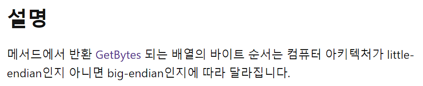 MicroSoft 공식 사이트에는 GetBytes 함수에 대한 설명이 이렇게 되어있다..