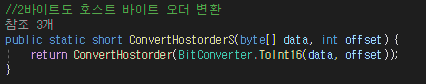 BitConverter.ToInt16 함수는 바이트 배열과 offset을 받아서