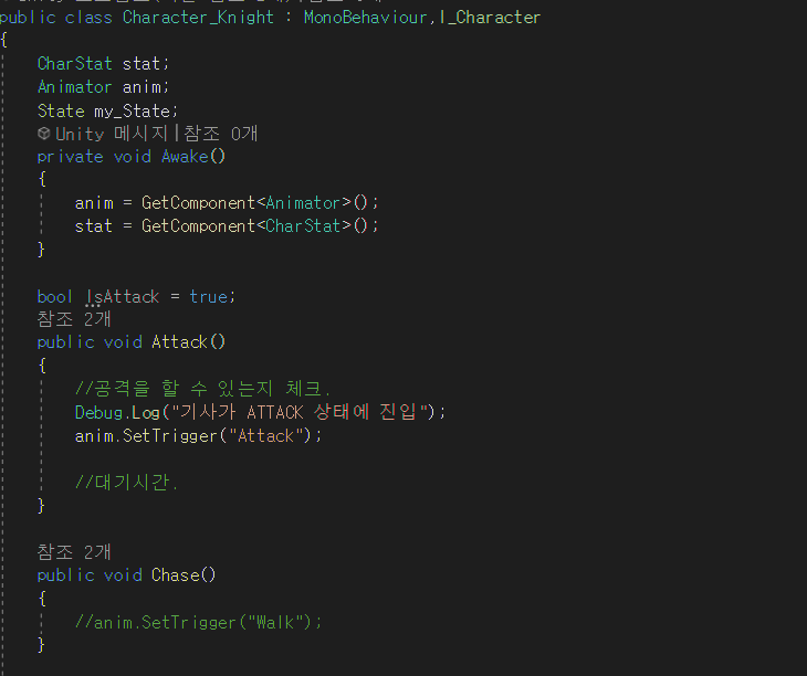 그리고 이런 알고리즘에 따라서 '기사' 가 아닌 캐릭터의 상태를 전이한다.