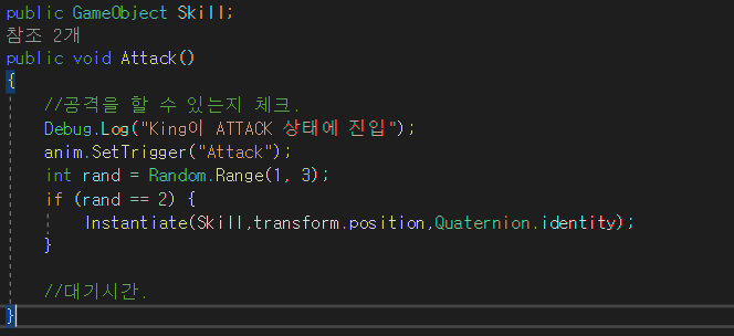 자 King은 확률에 따라서 스킬을 발동시킬수 있고 데미지 액션도 없다.