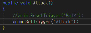 Attack에서 애니메이션을 실행해버리면 이상하다 왜냐하면 공격은 바로 실행되는것이 아니라 애니메이션 후에 실행이 되어야 하기 때문이다. 미치겠다 ㅋ