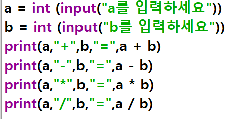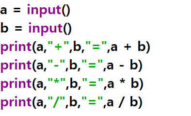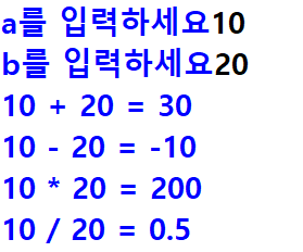 이렇게 사칙연산을 진행해서 값을 출력하는 프로그램을 만들어보자.