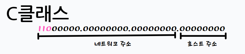 C클래스는 네트워크 주소가 110으로 시작하고 3옥텟, 호스트는 1옥텟 이하 설명 생략.