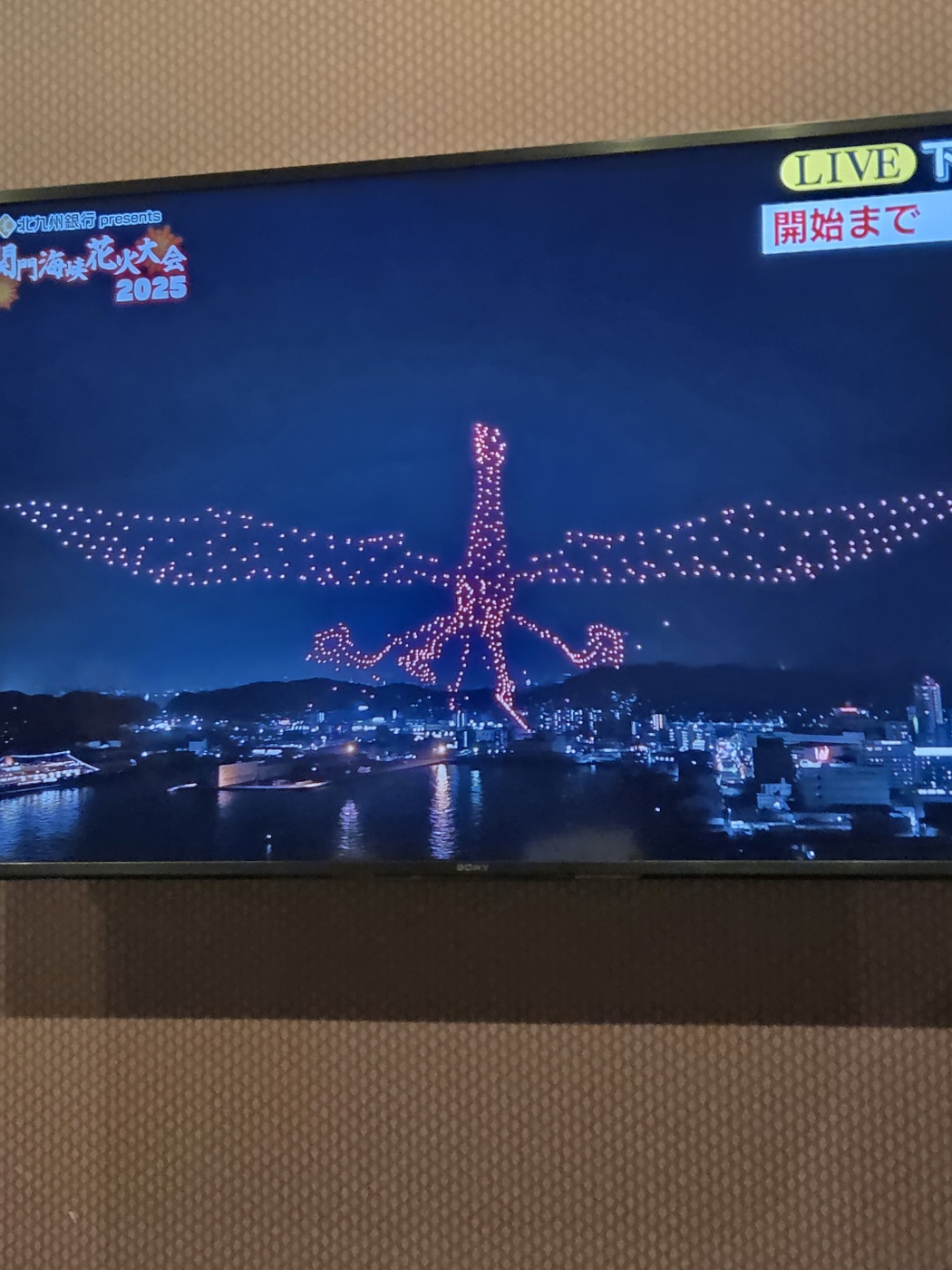 호텔 TV로 보는 시모노세키 드론/폭죽 쇼~~ㅋㅋ