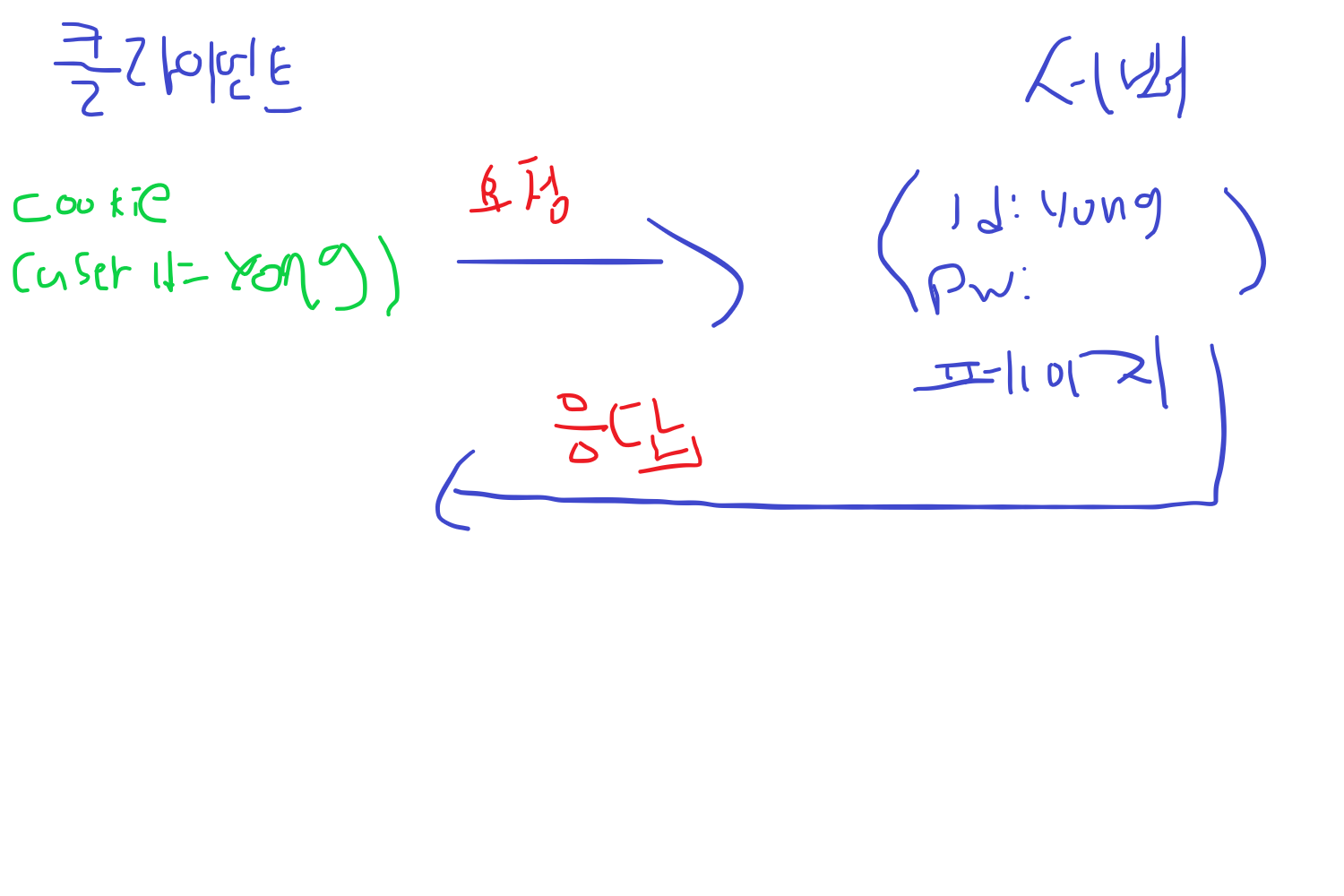 클라이언트는 다음 요청부터는 로그인을 안해도 되고 로그인 정보가 있는 쿠키와 같이 요청하면 서버는 사용자를 알 수 있죠.